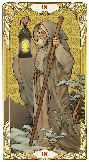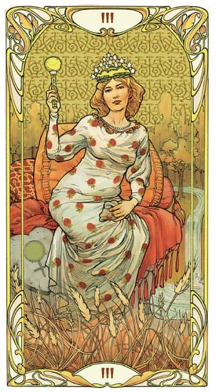 Karty od tego samego autora, który stworzył Mucha Tarot, wspaniała wersja słynnej talii Pameli Colman Smith w doskonałym stylu Art Nouveau, ozdobiona intarsjami z gorącego złota.