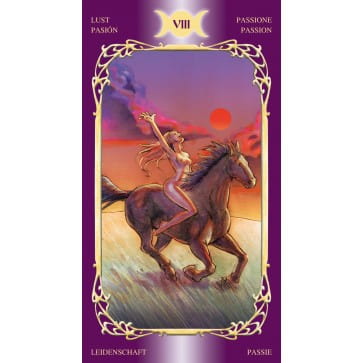Przesłanie brzmi: „Podążaj za bezkresnym kręgiem świętego Sabatu, spotkaj się z Wielką Boginią, Rogatym Bogiem i Dziewicą, Matką i Starą Kobietą. Zbliż się i odkryj sekrety miłości i miłosnego związku”. Oto, co skrywa głęboko Tarot Zmysłowości Wicca.