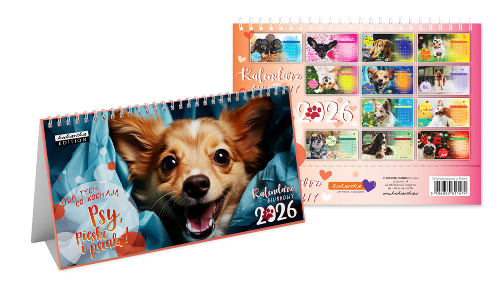 2026 Kalendarz na biurko "Psy, pieski i psiaki"
